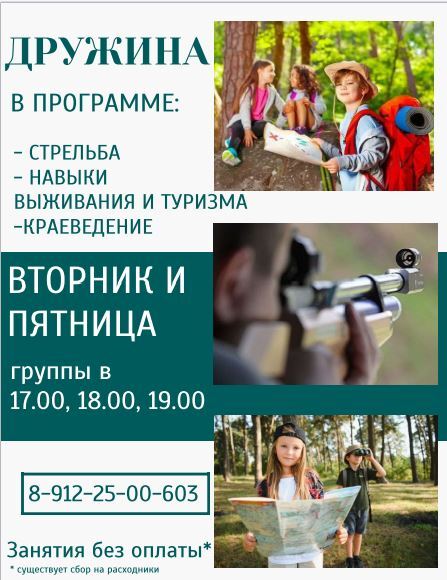 Клуб ДРУЖИНА (развитие навыка стерельбы и туризма)